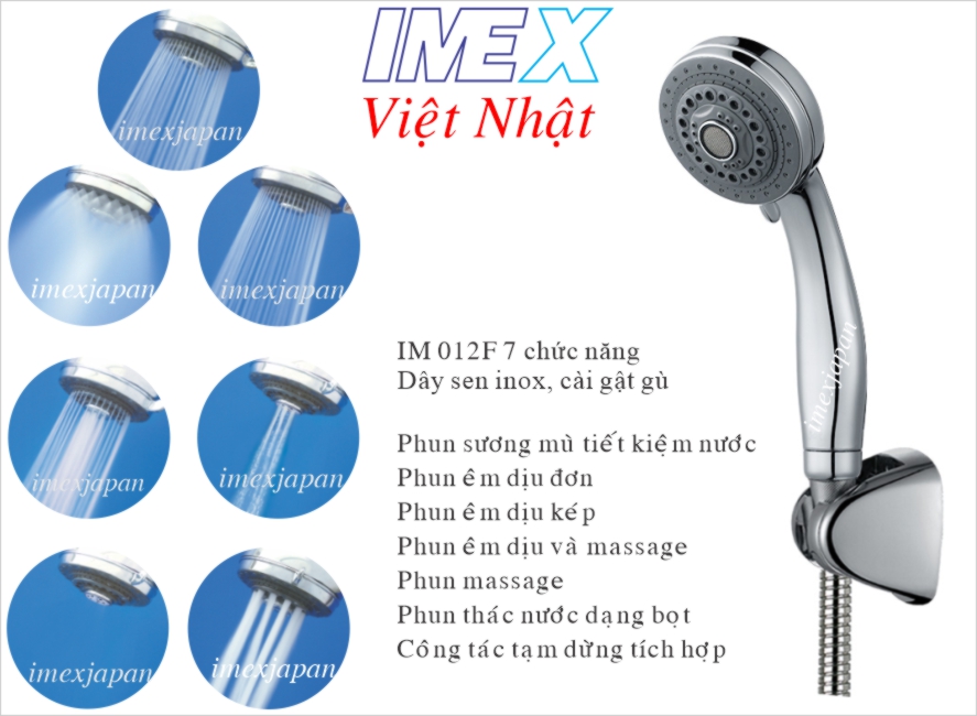 IM 012F 7 chức năng Dây sen inox, cài gật gù
