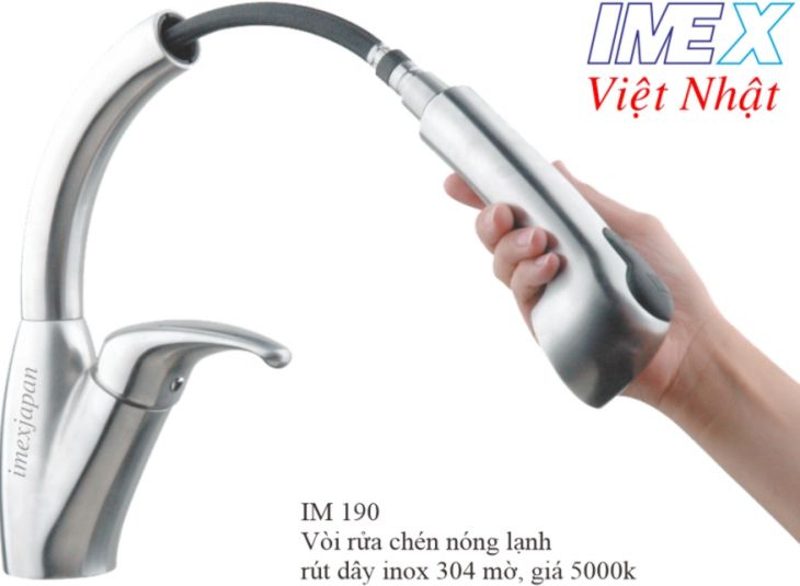 Vòi rửa chén rút dây nóng lạnh, điều chỉnh dầu phun tia và chảy dạng bọt, Inox mờ 304 khóa mở nước bằng tay gật gù quay qua quay lại được