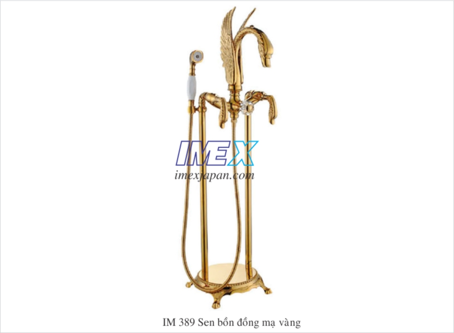 vị trí 306 vòi sen bồn tắm thiên nga 2 chức năng. Vòi sen linh hoạt, cấp nước cho bồn tắm. Khóa mở nước và chỉnh nóng lạnh bằng 2 tay gạt. Chất liệu đồng mạ vàng. Cấp nước từ dưới nền nhà lên.