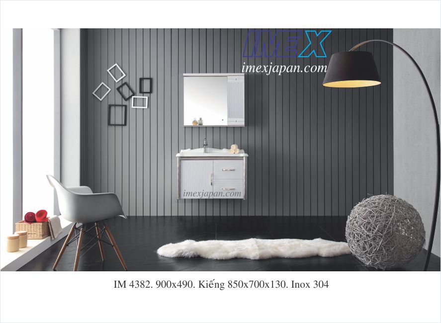 lavabo tủ inox 304, tô sứ tráng nano chống bám bẩn, tủ kiếng soi 2 ngăn 85x70x13cm