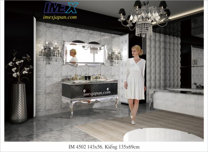lavabo tủ inox 304, mặt đá marble, tô sứ tráng nano chống bám bẩn, kiếng 135x69cm