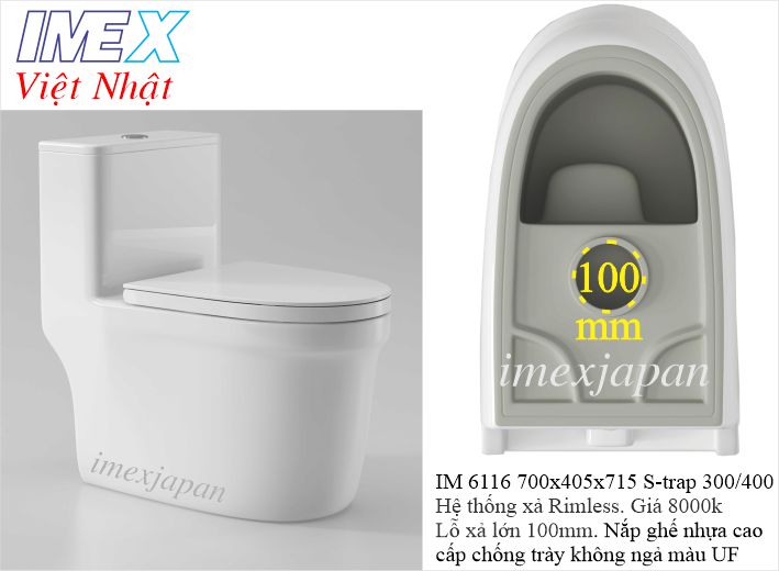 Bồn cầu 1 khối IM 6116 lỗ xả lớn 100mm. 715x405x715 S-trap 300/400 hệ thống xả Rimless 100, nắp ghế nhựa cao cấp UF chống trầy https://youtu.be/t-9C7J339-Y