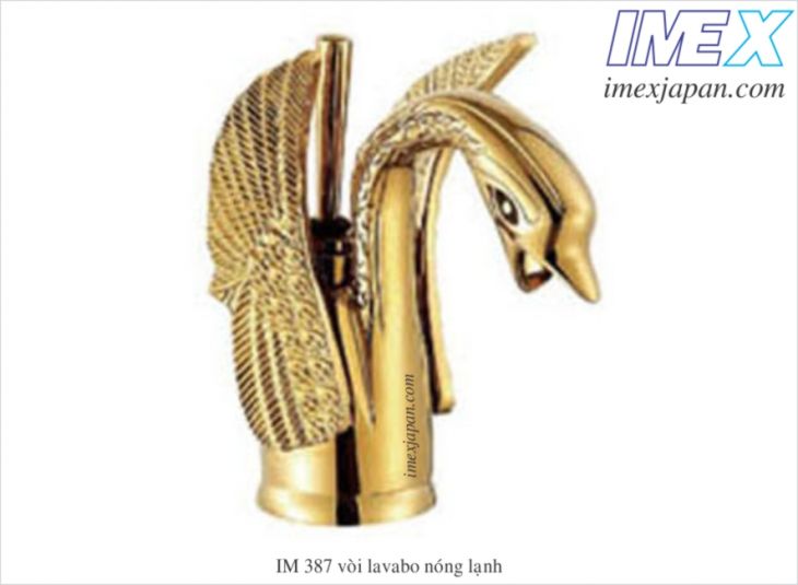 vòi lavabo 1 lỗ thiên nga khóa mở nước chỉnh nóng lạnh bằng tay gật gù, vòi thấp lắp trên lavabo, chất liệu đồng mạ vàng