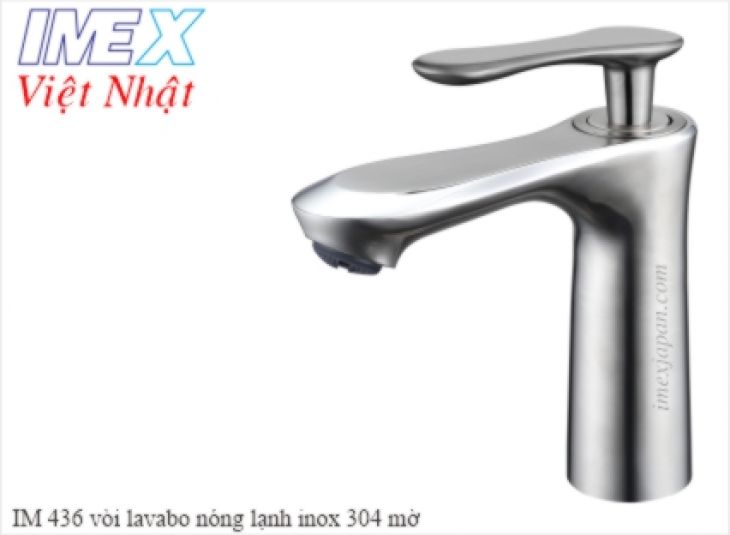 IM 436 Vòi lavabo nóng lạnh inox 304 mờ khóa mở nước chỉnh nóng lạnh bằng tay gật gù, vòi thấp lắp trên lavabo KHO 408 CÓ