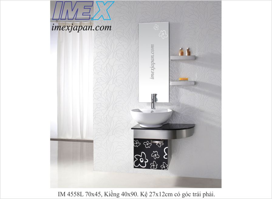 lavabo tủ inox 304,, tô sứ tráng nano chống bám bẩn, kiếng 80x55cm, kệ 40x12cm.
