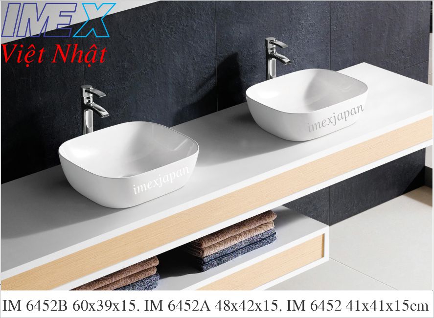 Lavabo để bàn viền mỏng IM 6452B, men sứ nano chống bám bẩn