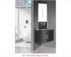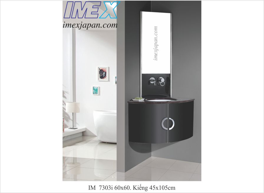 lavabo Inox 304 góc, tô sứ có xả chống tràn, bao gồm vòi, xả và kiếng soi. KT: 60x60cm, kiếng: 45x105cm.