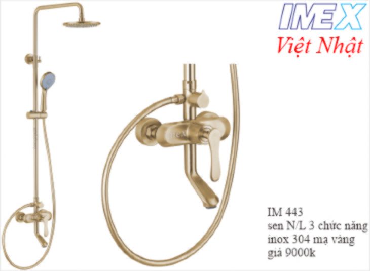 IM 443 sen ống nóng lạnh 3 chức năng inox 304 mạ vàng. KT: 144*25*21*25cm