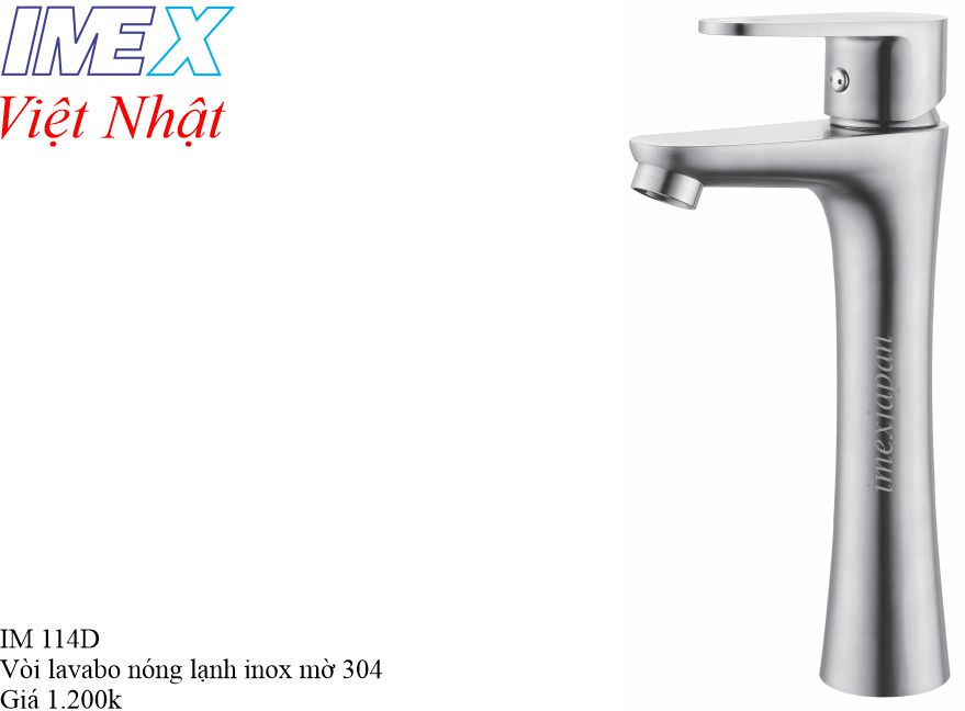 Vòi lavabo nóng lạnh, Inox mờ 304. Khóa mở nước và chỉnh nóng lạnh bằng tay gật gù, vòi cao dùng cho tô nổi