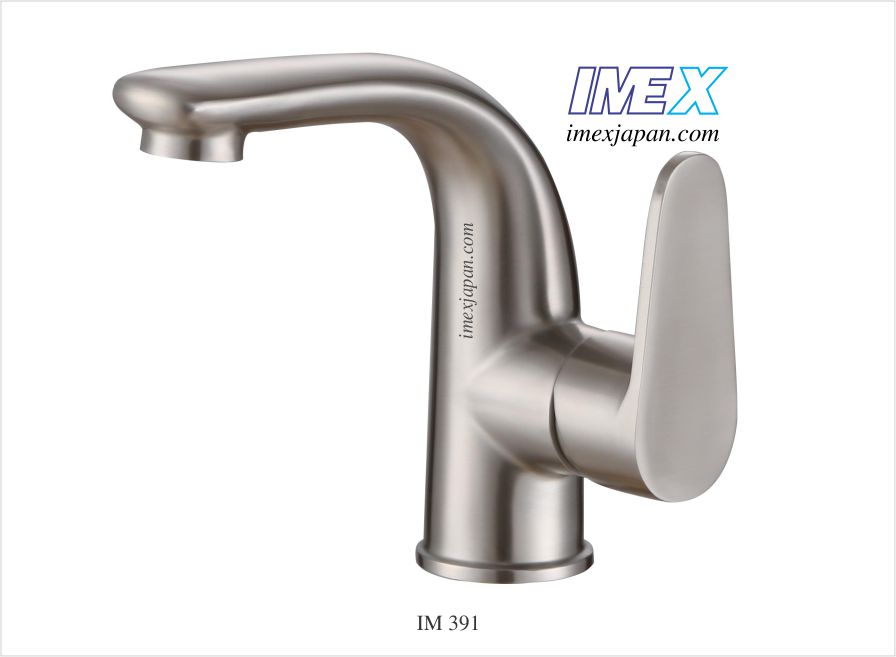 vị trí 402 Vòi lavabo nóng lạnh, Inox mờ 304. khóa mở nước và chỉnh nóng lạnh bằng tay gật gù, vòi thấp gắn trên lavabo giá chưa xả
