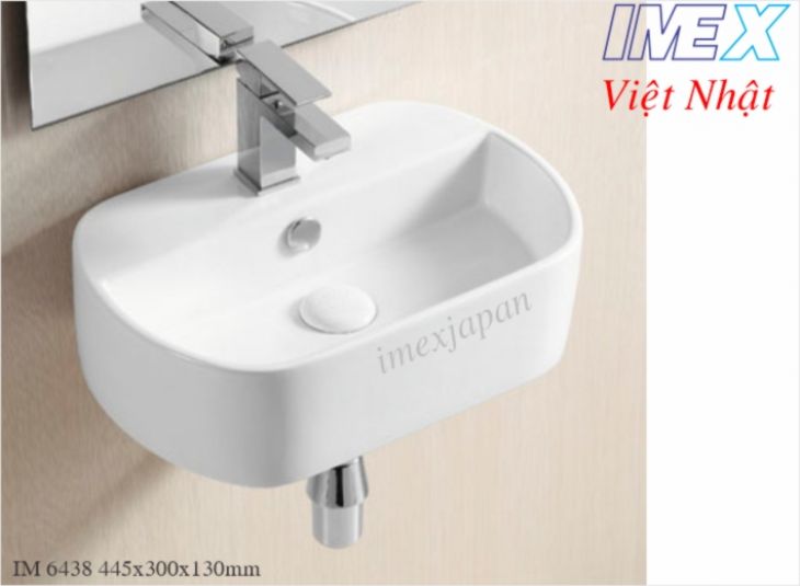 Lavabo treo tường hoặc để bàn IM 6438 men sứ nano chống bám bẩn, có xả tràn.Vị trí 101